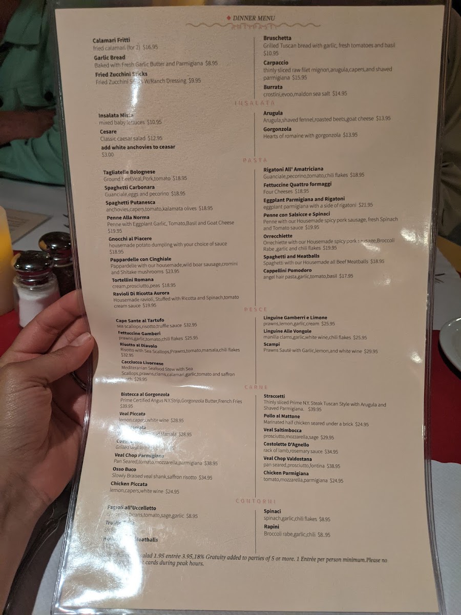 For the main event, savor their Secondi options, including the zesty Pollo Piccata and the luxurious Costoletta di Vitello Valdostana. Each dish is crafted with quality ingredients, reflecting the richness of Italian cuisine. Pair your meal with a decadent dessert like their famed crème brûlée.